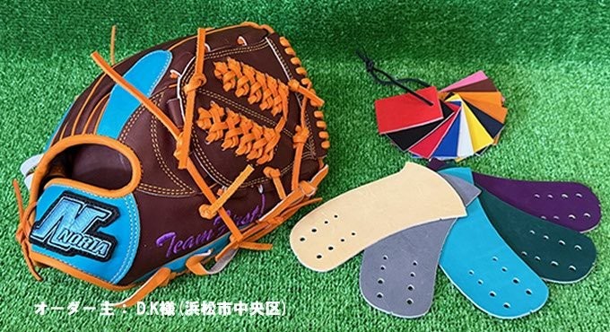 湯もみ型付けはグラブをお湯につけて揉んでいく技術です。プレー中の色々な打球や送球をいかに確実にミスなく捕球出来るかを目的としています。オイルや湯しみが出たり刻印がにじんだり、本体や皮ひもなど色落ちや他の部分への色移りがおこる場合があります。それは良いプレーが出来るよう心を込めて型付けした証拠です。新品時のきれいな硬いグラブをご希望のお客様はご遠慮下さい。特にブルー、レッド、グリーン、などは皮の特性上、色落ちや他の部分への色移りが避けられませんのであらかじめご了承下さい。また湯もみ型付けを希望された場合は土手ひも逆巻きで作業させて頂きます。